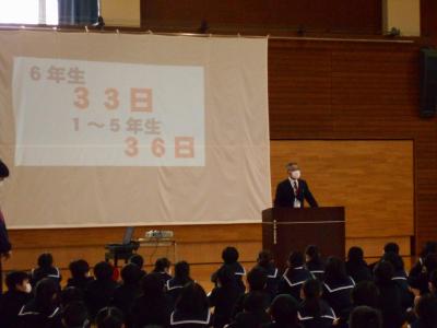 1つ学年が上がった自分を想像し、残り少ない3学期を1日1日大切に過ごしてくださいというお話でした。