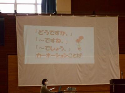 続いて、生活指導の先生から今月の生活目標についてお話がありました。