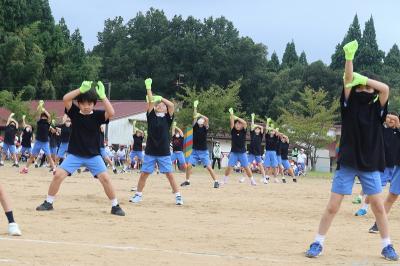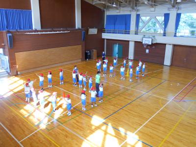 今日の1,2限目に、1・2年生合同で運動会で踊るダンスの練習をしました。