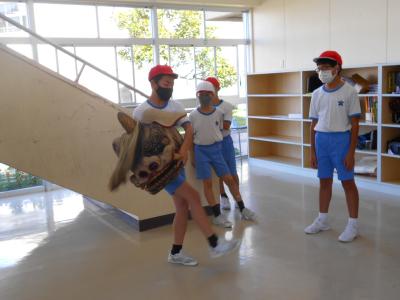 5の1 「3びきのかわいいオオカミ」など高学年でも楽しめる絵本を読んでいただきました。