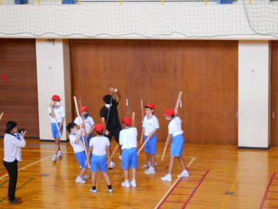 今日は、実際の祭りで演技されている青年団の方に来校いただき練習しました。