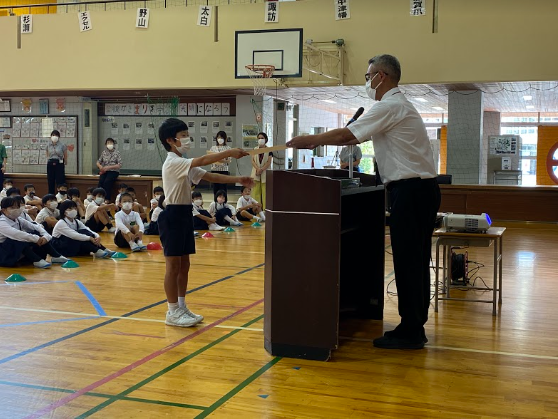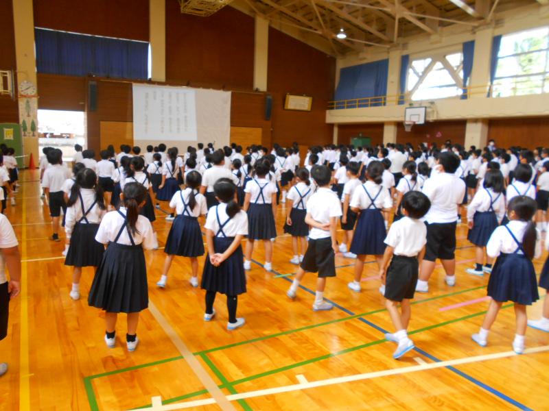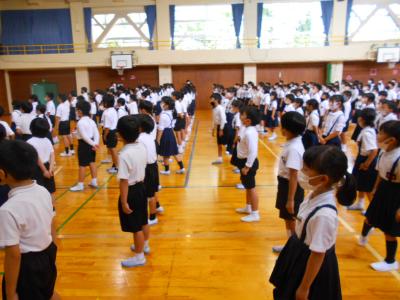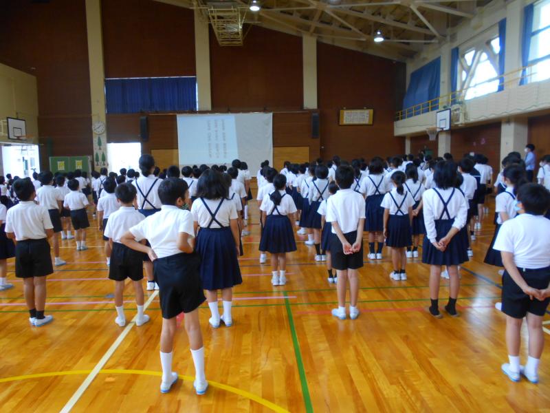 1年生は、初めての集会でしたが、中高学年の列をお手本にきちんと並ぶすることができました。