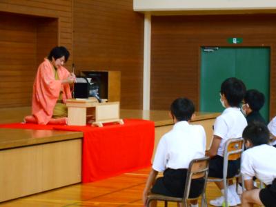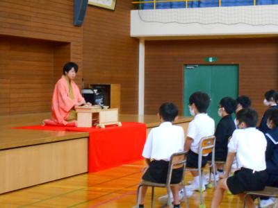 10月27日(木)津幡町広報特使の落語家 月亭方正さんの弟弟子の月亭方気さんによる「おきらくご」がありました。津幡町の6年生を対象に、気楽に落語に触れてもらいたいという趣旨で行われている事業です。