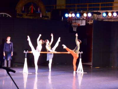 第1部では、バレエ用語やマイム(動作)の意味などを教えていただき、レッスンの様子を見せていただきました。