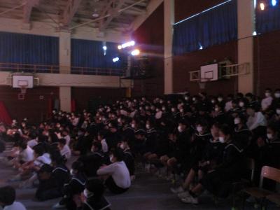 10月3日(月)約半年ぶりに全校揃っての「全校集会」を行いました。