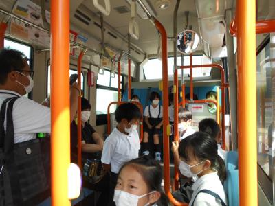 太白台小学校のまわりを運転していただき、動くバスにも乗ることができました。
