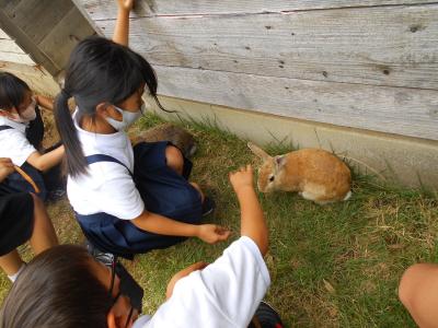 今日の昼休みに、生きもの委員会による低学年のウサギふれあい体験が実施されました。