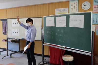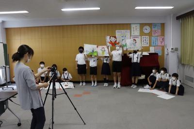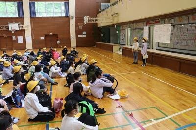 今日の5限目に全校集会と児童集会が行われ、4~6年生は体育館で、その他の学年は各教室で話を聞きました。