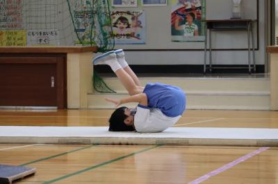 町器械運動交歓会を前に、5月30日(月)に校内発表会が行われ、4年生が日々の練習の成果を発表しました。