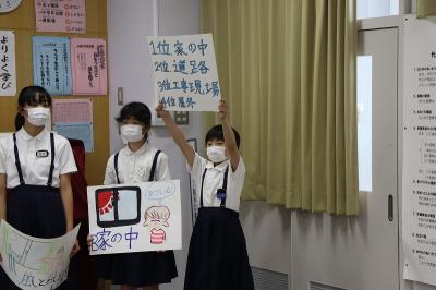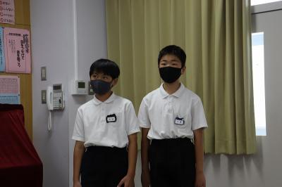 情報委員会のみなさんは、朝休み・長休み・昼休みの過ごし方について「この音楽が流れたら休み時間が終わるので教室に戻りましょう。」と劇をまじえて説明してくれました。