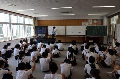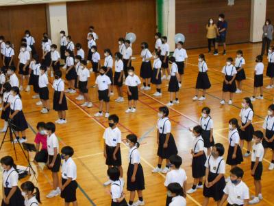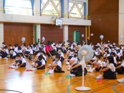 体育館の4~6年生は暑い中でしたが、静かに聞いていてとても素晴らしかったです。