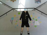 6年生が、校内のいろいろな場所に、奥行きを利用して楽しく見えるものをつくりました。