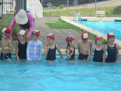 プールに入ることを楽しみにしていた1年生。