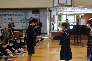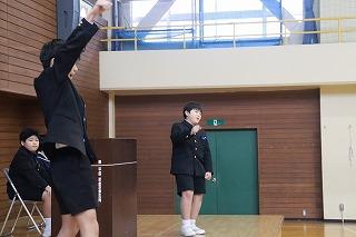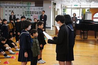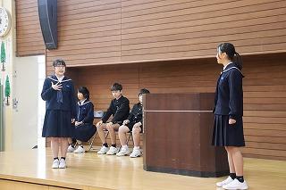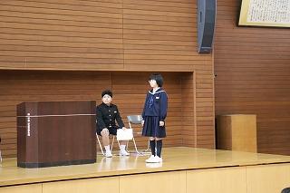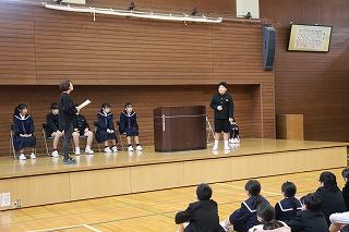 本校代表児童7名が練習の成果を4年生以上に披露しました。