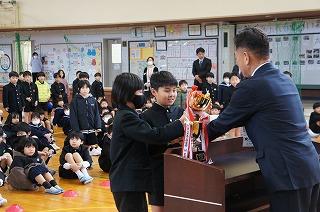 第2回津幡かるた大会の学校賞の表彰をしました。