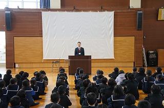 生徒指導の先生から、冬休みの過ごし方についての話がありました。