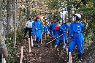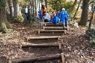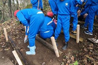 後半は、引き続き河北林研の方々にお手伝いいただき、太白の森入口の階段づくり。
