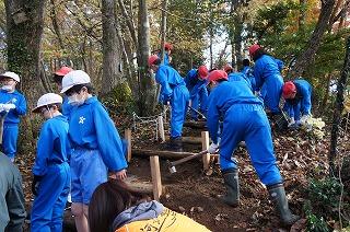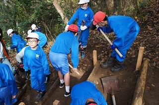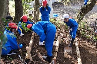 「1・2年生が坂道ですべったら危ない.。」「下学年のために、階段を作りたい。」