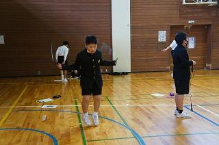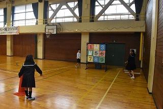 長休みに体育館で縄跳びの練習をしました。