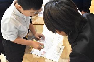 お店屋さんとお客さんに分かれて、たてわりグループで活動しました。