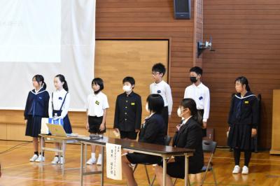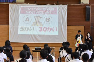 まず、保健委員会の児童たちが太白台小5・6年生の生活やおなかについて、アンケート結果をまじえ発表しました。