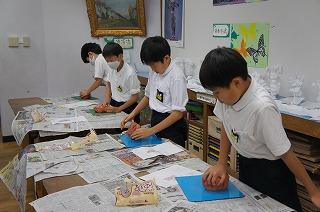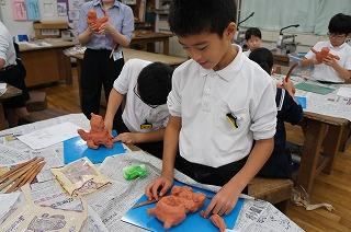 図工「使って楽しい焼き物」の学習で、シーサーを作りました。