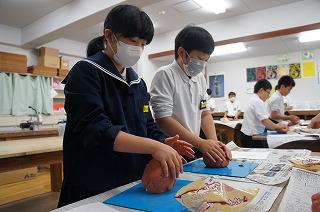 どんなシーサーにしようか、考えながら粘土をこねていきます。