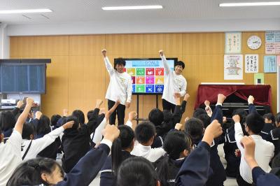 お二人の漫才や笑いを交えながら、子どもたちは、現在地球全体で抱えている問題を解決するための自分たちにできる手立てを考えていました。
