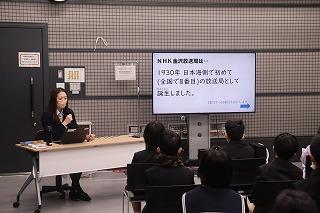 NHK金沢放送局では、放送局の歴史や番組のつくり方を学習。