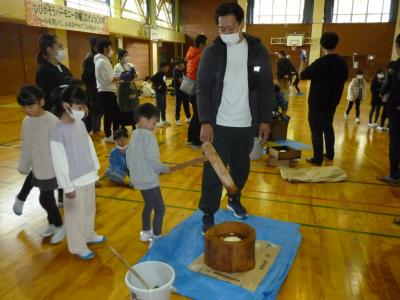 体験したことがない児童がほとんどですが、教えてもらいながら餅をつき、とてもよい経験になりました。