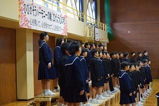 4年ぶりに、全校児童が体育館に集まっての音楽集会が開かれました。