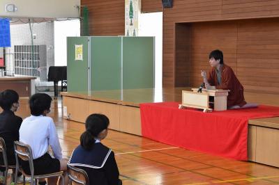 プロの落語家の言葉遣いや動きによって、子どもたちからたくさんの笑いが起こっていました。