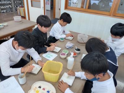 九谷焼資料館では、九谷焼の歴史や種類などについて学んだ後、お皿の絵付け体験も行いました。