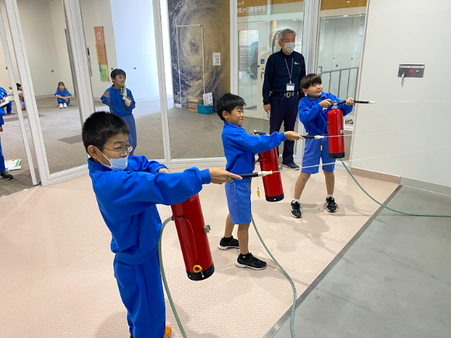 防災センターと消防署では、台風や地震などの災害の体験や、本物の消防車の中の見学をしました。なかなかできない体験で、楽しみながら、防災の勉強ができました。