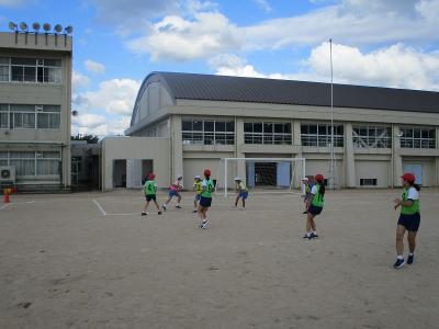 太白台小学校の6年生と中条小学校の6年生でサッカーの試合を行い、親睦を深めました。