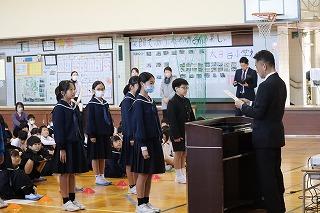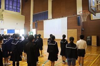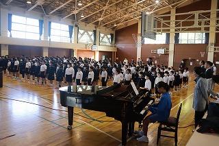 全校児童で校歌を歌いました。
