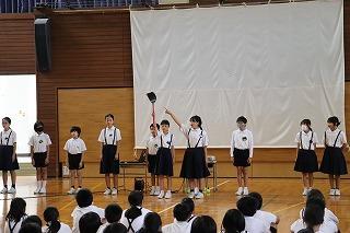 すてきなあいさつをしている人をお昼の放送で全校に伝えています。
