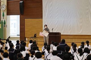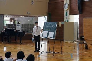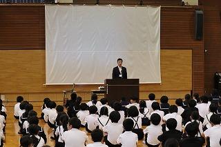 校長先生が大好きなマンガのセリフ、「あきらめたら、そこで試合終了ですよ」を紹介され、「挑戦」することの大切さについてのお話がありました。