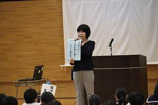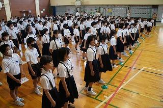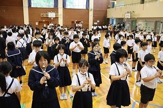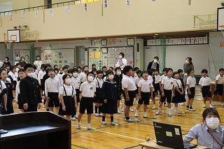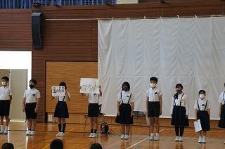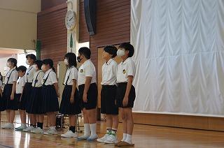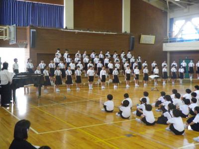 今月の歌の合唱があり、全校児童のすてきな歌声が体育館中に響き渡りました。