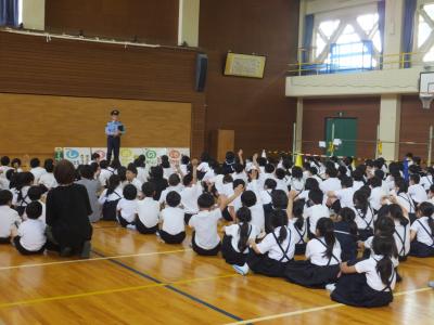 「いかのおすし」について分かりやすく説明があり、子どもたちは登下校の安全について再確認しました。