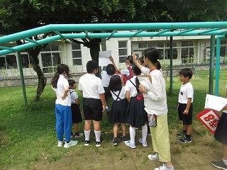 クイズは校舎内だけではなく、中庭や運動場にも。