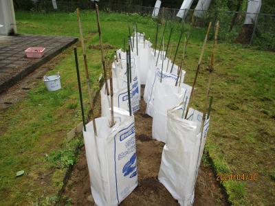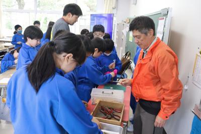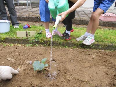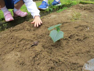 今年度の第1回の授業は地域の方に先生になっていただき、野菜の苗を植えました。