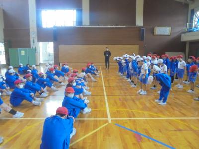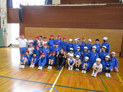 運動会の定番「チェッコリ」を全校児童で踊り、「道」を歌いました。