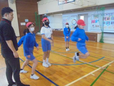 そこで、6年生に8の字跳びを教えてもらうことにしました。