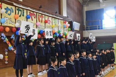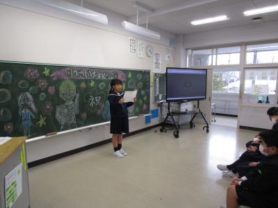 最後は5年生が代表してメッセージカードを渡しました。