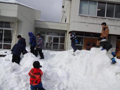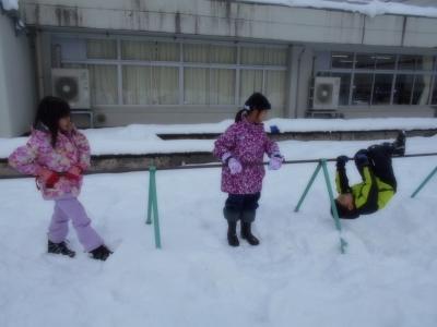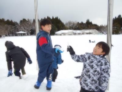 運動場にたくさんの雪が積もったので、雪遊びをしました。