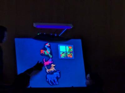 始めに「ブレーメンの音楽隊」をブラックシアターで見せていただきました。