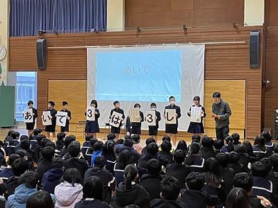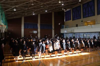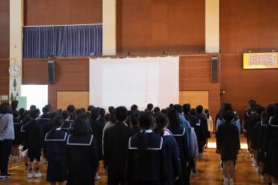 全校で校歌を歌いました。