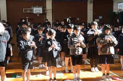終業式を終えた後、4年生のリコーダー奏を聞きながら教室に戻りました。