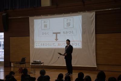 あいさつがとてもよくなったこと、3学期も「話を聞く」ことをがんばることをお話されました。